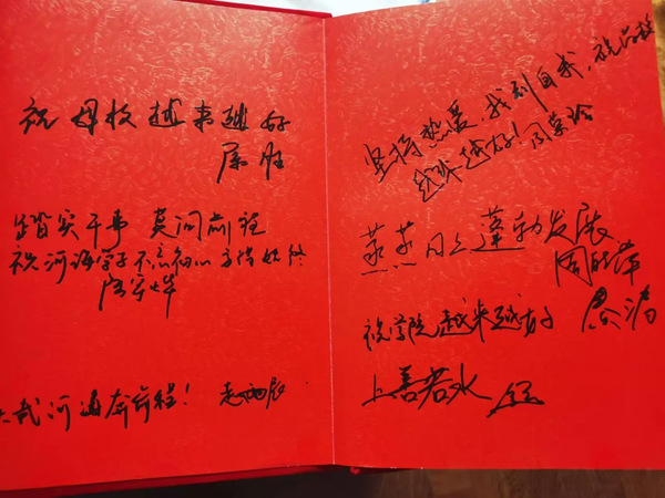 电气与动力工程学院院领导对校友们重返母校表示热烈欢迎,同时也对校友们长期以来对学校的支持和关注表示感谢,希望校友们常回家看看,祝愿校友们生活顺利。曾经的班导师们也回忆起当年的点点滴滴,向校友们表达了深切的关心和祝福。大家欢聚一堂,回忆往事,讲述毕业后十年的人生经历,并在红色打卡册上留下对学校的祝福。