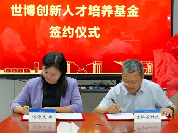 9月24日,“世博创新人才基金”签约仪式在河海大学江宁校区举行。江苏世博设计研究院有限公司院长郭世平,常务副院长刘伟,院长助理林昱;河海大学副校长邓成,国内合作发展处处长、河海大学教育发展基金会副理事长兼秘书长赵冰,地球科学与工程学院党委书记马孟珂,院长刘瑾,副院长赵燕容,副院长肖儒雅,党委副书记、副院长张玲彬,部分教师代表、学生代表参加签约仪式。