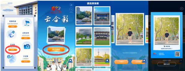 3.点击【进入活动】选择合影背景-点击【上传照片】上传本人照片生成合影-点击【保存到相册】可保存合影到相册-点击【分享给好友】邀请好友一起参与活动。