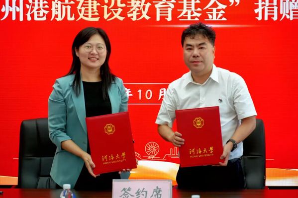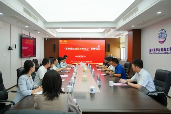 10月10日,“苏州港航建设教育基金”捐赠签约仪式在河海大学西康路校区举行。河海大学副校长陈达,港口及航道工程专业1996级校友、苏州港航建设工程有限公司总经理、苏州校友会常务副会长罗松涛,中交上海航道局有限公司江苏交通建设工程分公司党委书记张骏,江苏壹路技术咨询有限公司总经理吴梓愚,苏州校友会执行会长雷秋生,学校相关职能部门、学院负责人出席。仪式由港口海岸与近海工程学院党委书记张雪刚主持。