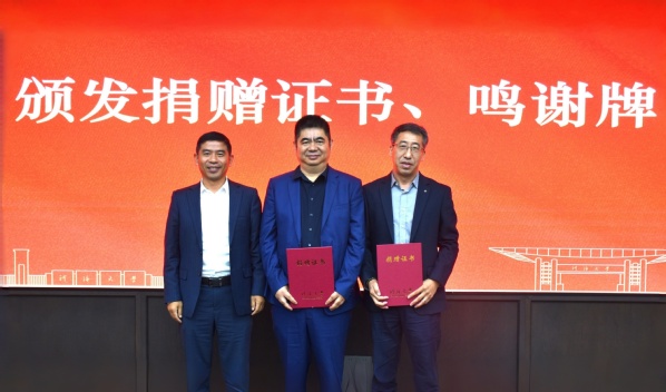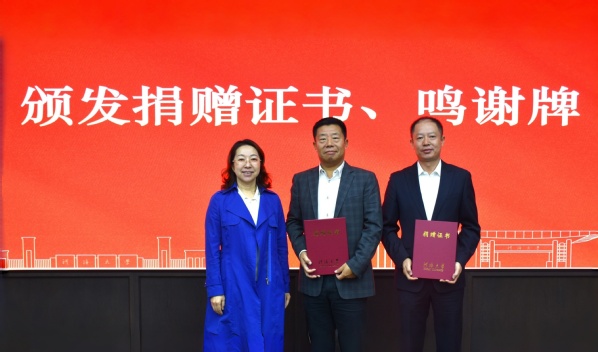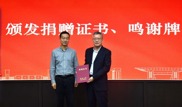 水利水电学院党委书记娄健为李刚校友颁发捐赠证书