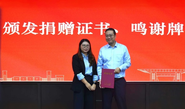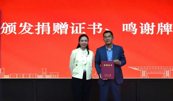 水文水资源学院党委副书记陈培玲为范立柱校友颁发捐赠证书