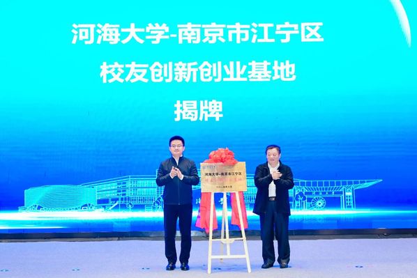 唐福华、朱乔共同为河海大学-南京市江宁区校友创新创业基地揭牌。