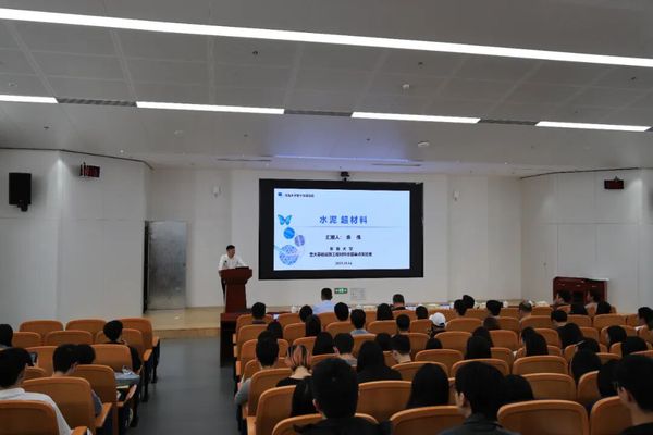 报告中,佘伟以“结构为骨、功能为肉、智能为魂”为引,分析了科技革命演化与材料学科发展的关系,系统阐述了对工程材料发展范式变革的深刻思考。他重点介绍了团队面向国家重大工程需求首创的“水泥基仿生超材料”新范式,团队通过仿生学与跨尺度设计,旨在突破传统材料性能极限,实现力学性能的跨越式提升,并赋予材料超绝热、超疏水、自修复等新功能。报告内容深邃,引人入胜,为现场师生清晰地勾勒出土木工程材料迈向智能化、绿色化与多功能化的前沿图景。