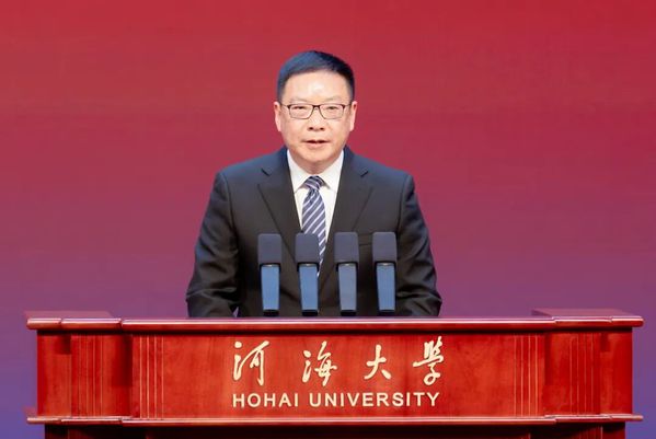 熊四皓代表教育部向河海大学全体师生员工和广大校友致以热烈祝贺和诚挚问候。他指出,河海大学是中国第一所培养水利人才的高等学府,先后为国家培养了30余万名优秀人才。学校主动服务国家“江河战略”“双碳”战略,以“水”为特色的一流学科建设取得积极成效,产生了一系列标志性成果。立足新起点,希望河海大学坚持社会主义办学方向,坚定不移落实立德树人根本任务,努力培养更多担当民族复兴大任的时代新人;坚持改革创新,全面提升人才自主培养质量,培养更多拔尖创新人才和国家战略急需人才;加强有组织科研,更好服务国家战略和区域经济社会发展,为保障国家水安全、参与全球水治理贡献更多“河海方案”。