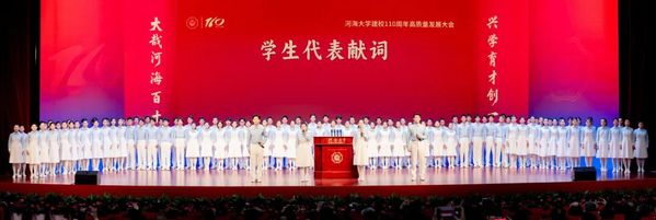大会现场,110名学生代表献词心潮澎湃、声韵铿锵,以青春之声祝福河海百十华诞,以时代强音许下“请党放心,强国有我;请河海见证,建功有我”的铮铮誓言,立志奋力书写为中国式现代化挺膺担当的青春篇章。