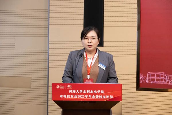 水利水电学院院长王媛代表学院向长期以来始终心系母校、支持学校、学院建设与发展的各位校友表示,并介绍了学院在科技创新、人才培养、国际交流等领域取得的成绩。期盼校友们坚守初心,勇担使命,在水利事业发展中再立新功;常念母校,情系学院,在产学研合作中深化共赢;薪火相传,引领后学,为国家强国建设、民族复兴伟业贡献河海水电人的智慧和力量。
